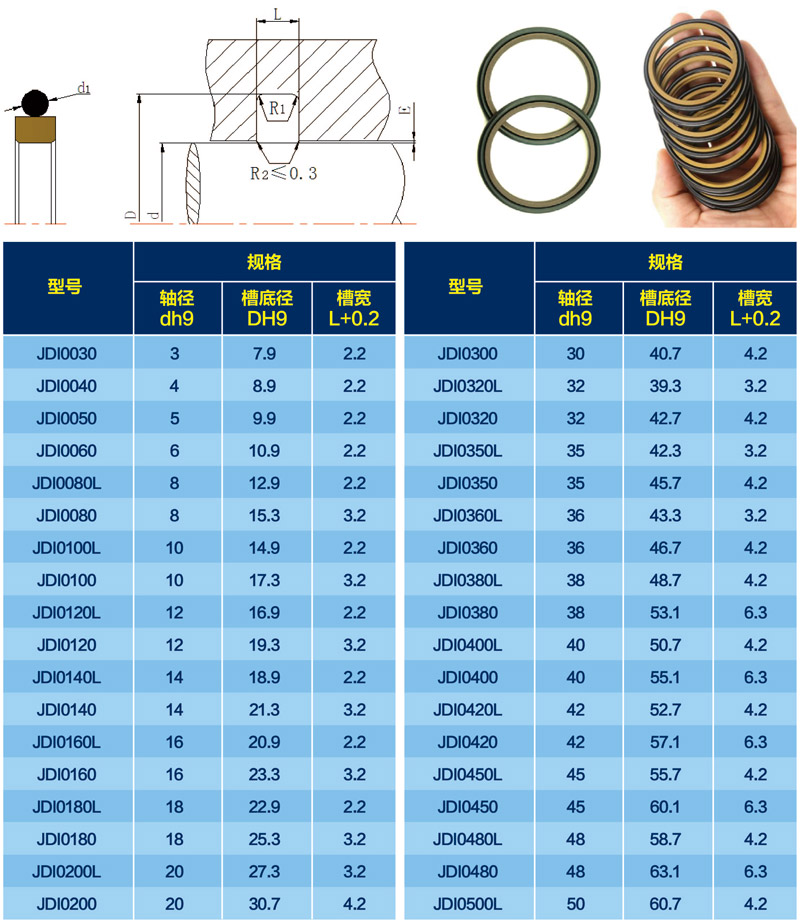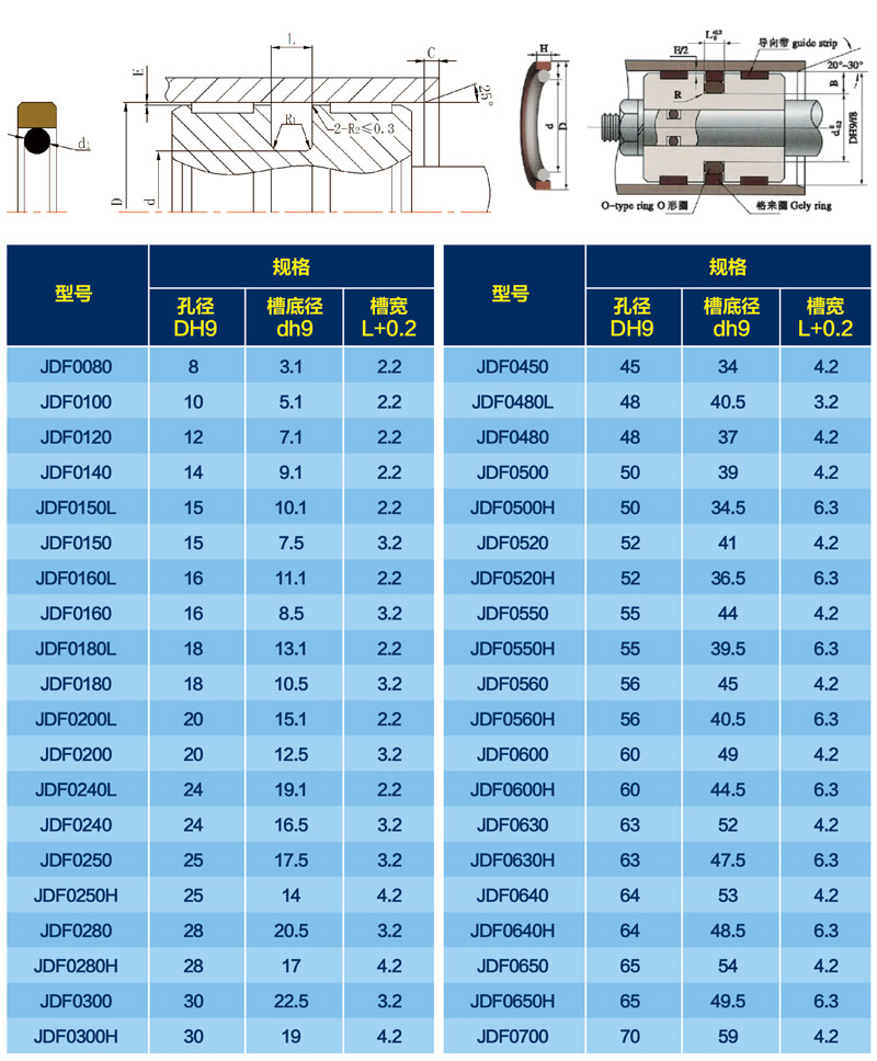 格萊圈由一個橡膠O型圈及聚四氟乙烯圈組合而成。〇型圈施力,格萊圈為雙作用活塞密封。摩擦力低,無爬行,啟動力小,耐高壓??煞譃榭子酶駚砣洼S用格來圈。